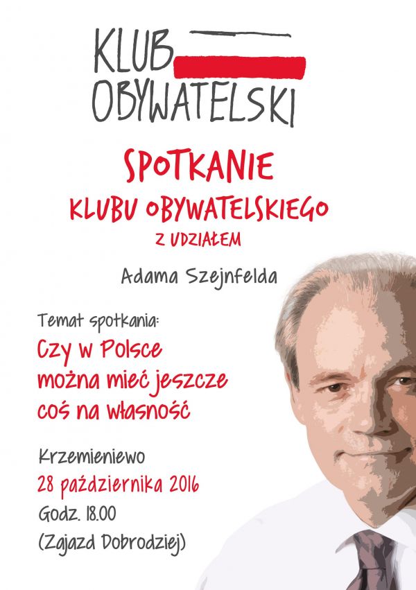 W Polsce odtwarzany jest obecnie komunizm, czy może już nawet i feudalizm? – zastanawiano się na inauguracyjnym posiedzeniu Leszczyńskiego Klubu Obywatelskiego, którego temat brzmiał: „Czy w Polsce można mieć jeszcze coś na własność?” Prelegentem Klubu był Adam Szejnfeld, poseł do Parlamentu Europejskiego, były burmistrz i wiceminister gospodarki oraz wieloletni parlamentarzysta zajmujący się kwestiami ekonomicznymi [...]