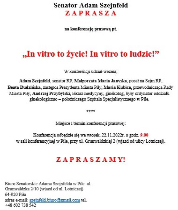 Centrum Inicjatyw Społecznych w Trzciance, to najlepsze miejsce, by rozmawiać o inicjatywach obywatelskich. Dlatego właśnie tu poseł Małgorzata Janyska, senator Adam Szejnfeld i burmistrz Krzysztof Jaworski, włodarz Miasta i Gminy Trzcianka, zorganizowali konferencję prasową, by promować obywatelską inicjatywę uchwalenia przez Parlament ustawy o finasowaniu programu in vitro. In vitro bowiem to życie! In vitro to [...]