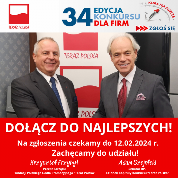 UWAGA! UWAGA! W dniu 12 lutego zakończy się termin przyjmowania zgłoszeń produktów i usług do kolejnej edycji Konkursu Fundacji Polskiego Godła Promocyjnego „Teraz Polska”.