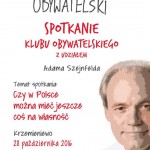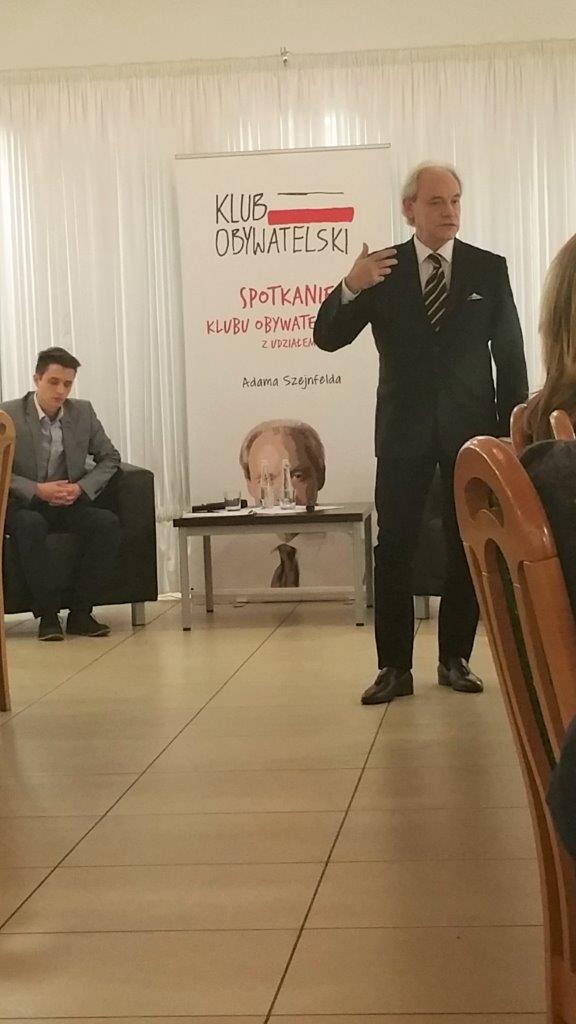 W Polsce odtwarzany jest obecnie komunizm, czy może już nawet i feudalizm? – zastanawiano się na inauguracyjnym posiedzeniu Leszczyńskiego Klubu Obywatelskiego, którego temat brzmiał: „Czy w Polsce można mieć jeszcze coś na własność?” Prelegentem Klubu był Adam Szejnfeld, poseł do Parlamentu Europejskiego, były burmistrz i wiceminister gospodarki oraz wieloletni parlamentarzysta zajmujący się kwestiami ekonomicznymi i gospodarczymi. Spotkanie odbyło się w dniu 28.10.2016r. w Krzemieniewie. Debatę na temat wolności i własności poprzedziły spotkania posła w Lesznie oraz konferencja prasowa. Organizatorką wizyty posła Adama Szejnfelda w Lesznie i powicie leszczyńskim była pani radna Barbara Mroczkowska, a debatę Klubu prowadził pan Piotr Ratajczak, doktorant na Uniwersytecie Ekonomicznym w Poznaniu. Jednym z bardzo wielu uczestników spotkania był prezydent Leszna, pan Łukasz Borowiak.