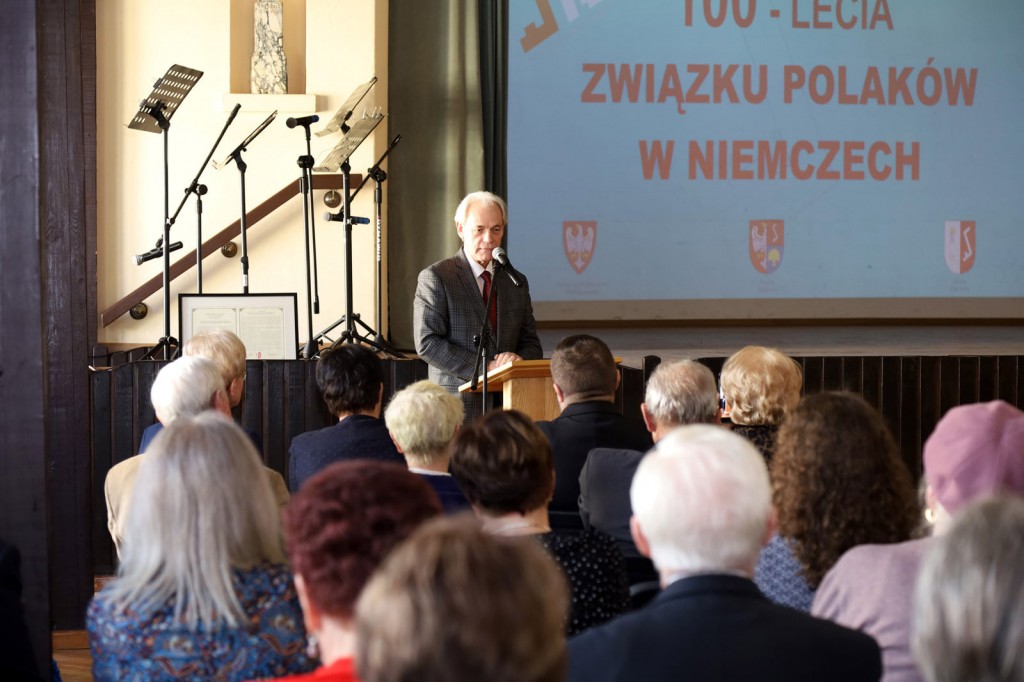 W dzisiejszych czasach, wspominając okres międzywojenny, uświadamiamy sobie, nie tylko jak ważna jest dla państwa i narodu własna tożsamość, ta, o którą dbali działacze Związku Polaków w Niemczech, ale też jak tragiczna w swoich skutkach może być międzynarodowa izolacja i samotność państwa na scenie politycznej. W dobie barbarzyńskiej agresji Federacji Rosyjskiej na wolną Ukrainę, przekonujemy się, jak cenne jest nasze członkostwo w Unii Europejskiej oraz w strukturach NATO. A przecież jeszcze niedawno byli tacy, którzy podważali sens i siłę NATO. Do dzisiaj są tacy, którzy kwestionują członkostwo Polski w Unii Europejskiej. Obecnie przekonujemy się też, że ludzkość nie stworzyła lepszego i bezpieczniejszego ustroju, niż demokracja liberalna. Historia bowiem pokazuje, że konflikty zbrojne, wojny powstają przede wszystkim w krajach rządzonych autorytarnie, w dyktaturach. Państwa demokratyczne, przywiązane do takich wartości jak wolność, równość, równouprawnienie, praworządność nie toczą bowiem ze sobą wojen. Mogą konkurować, ale ich narody wzajemnie się nie zabijają. Ceńmy zatem demokrację i praworządność, chrońmy też nasze członkostwo w strukturach rodziny demokratycznych państw Europy i świata – zaapelował w swoim wystąpieniu senator Adam Szejnfeld.
