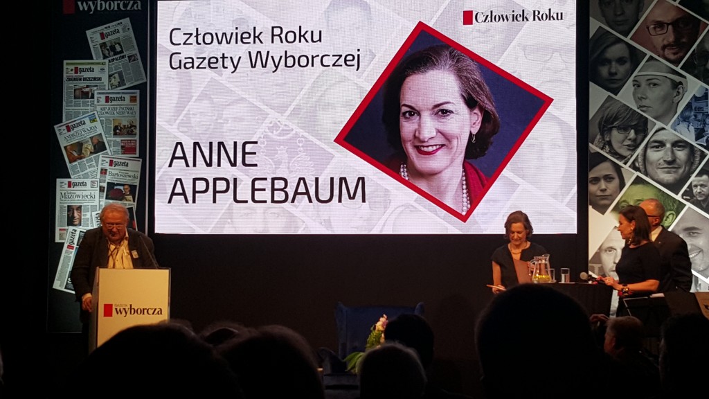 Byłam w Polsce 29 lat temu, pamiętam jak ludzie stali w kolejce po “Gazetę”. Ale pamiętam, co było wcześniej. (…) Dzisiaj widzimy, co wyrosło z tego. Dzięki demokracji, dzięki państwu prawa i dzięki energii ludzi, którzy chcieli coś zbudować. (…)W tym roku mam specjalne odczucie, że znowu jestem młoda. Bo znowu widzę, że tysiące energicznych Polaków są na ulicach i walczą za demokrację. To mi przypomina jak was widziałam, kiedy robiliście to 30 lat temu. Dziękuję wam, że to robicie, że pracujecie, że stworzyliście wspaniałą Polskę. – powiedziała Anne Applebaum, podczas Gali Człowieka Roku oraz 29. urodzin Gazety Wyborczej. Laudację na część Applebaum wygłosił prof. Jarosław Hrycak. W uroczystości, która odbyła się 25 maja br. uczestniczyli ludzie kultury, mediów, przedstawiciele organizacji społecznych oraz świata polityki – w Adam Szejnfeld, poseł do Parlamentu Europejskiego.