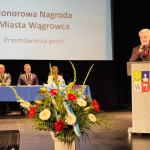 Obchodzimy dzisiaj Święto Miasta, ale niemalże w każdym wystąpieniu i pana przewodniczącego, i pana burmistrza, i laureatów, czyli panów Abram, przedstawicielek Koła Hafciarskiego, czy Zgromadzenia Sióstr Miłosierdzia mowa była o.… ludziach. Tak, to bowiem ludzie tworzą wspólnotę, to ludzie razem, tworzą historię, tradycję, to ludzie są autorami osiągnięć miasta. Dzisiejsze święto zatem, to święto ludzi, święto mieszkańców Wągrowca, całych pokoleń, które żyły, działały i pracowały przed nami i tych, którzy budują Wągrowiec dzisiaj. Wszystkim należą się gratulacje i wielkie podziękowania, ale zarazem podkreślić trzeba, że te osiągniecia są możliwe tylko wtedy, kiedy ludzie działają razem ze sobą, a nie osobno i przeciwko sobie. Kiedy mówimy o historii trzeba pamiętać, że nie zawsze tak było i dbać należy o to, aby w przyszłości się nie dzielić, nie walczyć, lecz zawsze współpracować – powiedział podczas uroczystości senator Adam Szejnfeld dodając: Miastu i jego mieszkańcom życzę wszelkiej pomyślności.