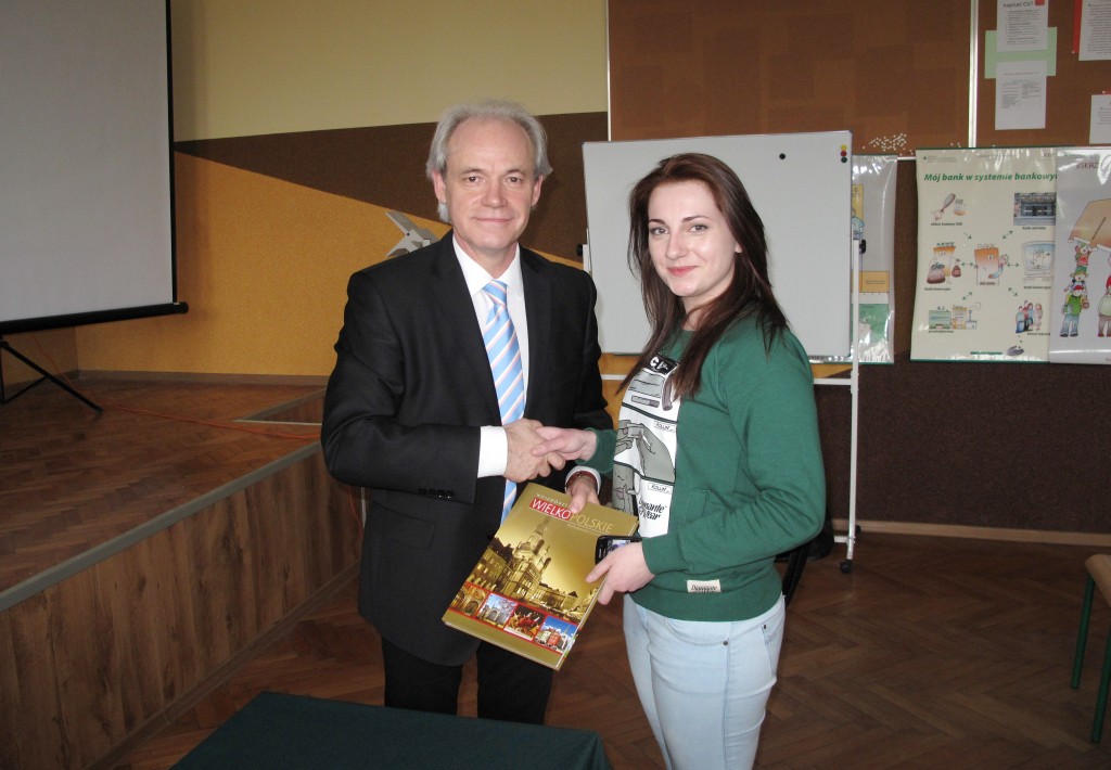 Spotkanie zakończono wręczeniem nagród za aktywność uczniom, którzy najczęściej zdawali pytania, czy też wyrażali swoje poglądy. O przyznaniu nagrody decydowało demokratyczne głosowanie samych uczestników dyskusji. To zasada podczas spotkań z posłem Adam Szejnfeldem. Za najbardziej aktywnych uznano Anetę Milewską, Kamelię Gwizun oraz Michała Łaseckiego. Gratulujemy.